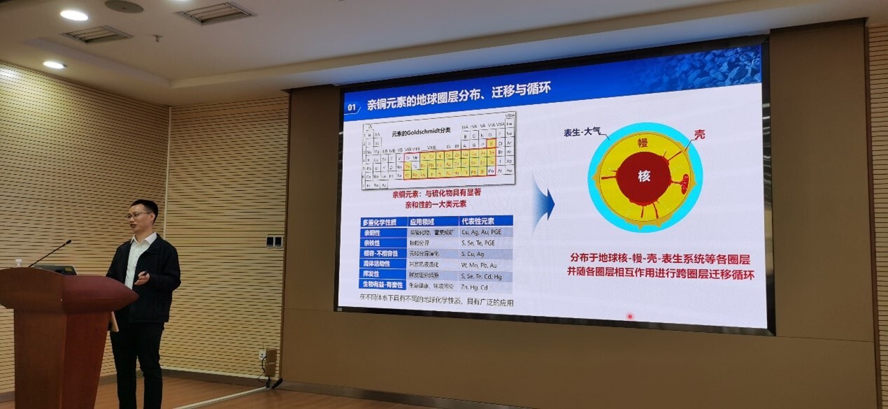 应关键矿产成矿与预测全国重点实验室邀请,中国地质大学(武汉)地球科学学院汪在聪教授于12月8日访问中国科学院地球化学研究所(以下简称地化所),并在 “地化所青年学术论坛”作了题为“亲铜元素的跨圈层循环及其资源环境效应”的学术报告。报告会由关键矿产室主任赵军红研究员主持报告会,所内80余名科研人员和研究生参会。